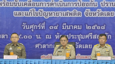 14 มี.ค.2568 เวลา 09:00 น. นำโดย นายชัยพจน์ จรูญพงศ์ ผู้ว่าราชการจังหวัดเลย เป็นประธาน รองผู้ว่าราชการจังหวัดเลย และหัวหน้าหน่วยงานราชการจังหวัดเลย ตำรวจภูธรจังหวัดเลย นำโดย พล.ต.ต.วีระเดช เลขะวรกุล ผู้บังคับการตำรวจภูธรจังหวัดเลย